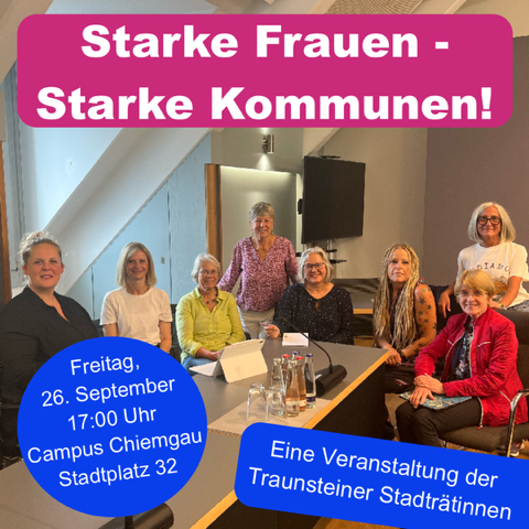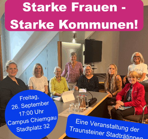 Im Campus Chiemgau stellen wir Traunsteiner Stadträtinnen uns vor und zeigen, wie wichtig kommunale Themen für uns Frauen sind und was man erreichen kann. Wir wollen Frauen ermutigen, für den Stadtrat zu kandidieren.